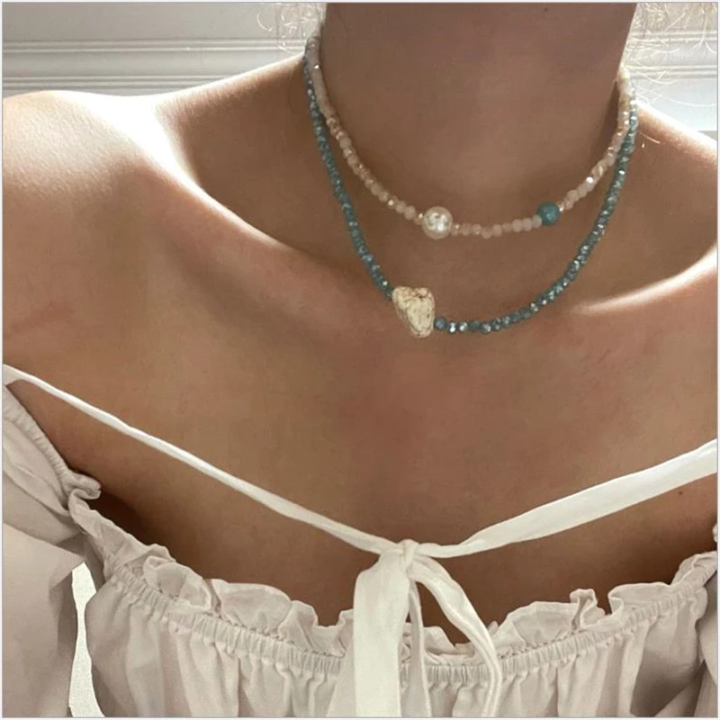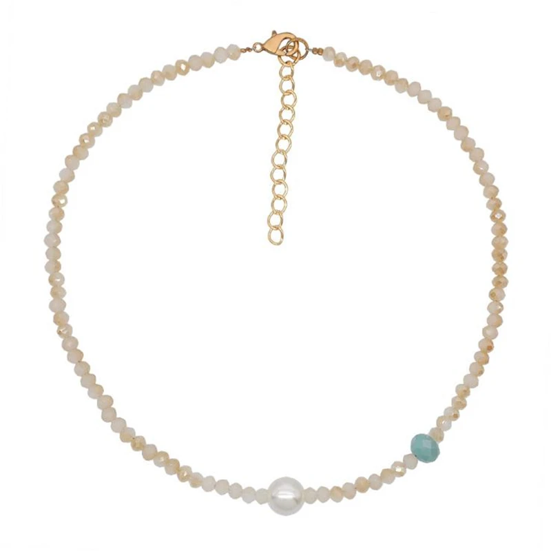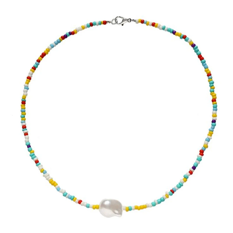 Ожерелье-цепочка с бусинами из зеленого хрусталя в богемном стиле, ожерелье-чокер с натуральным камнем неправильной формы и жемчугом, женская бижутерия