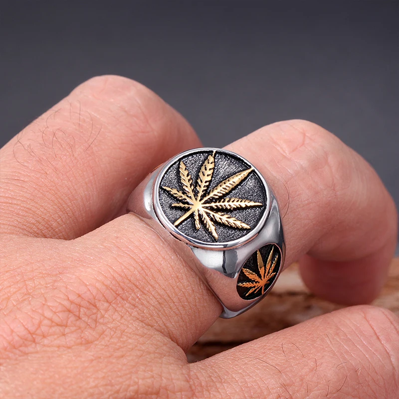 Кольцо мужское из нержавеющей стали в стиле панк с Кленовым листом
