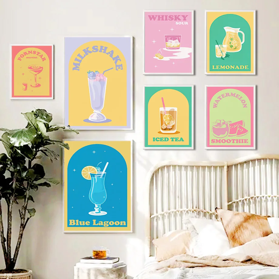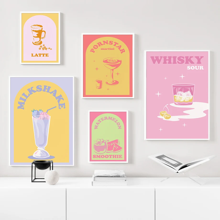 Martini Latte Lemonade виски Pina Colada настенная Картина на холсте скандинавские постеры и принты настенные картины для бара декор комнаты