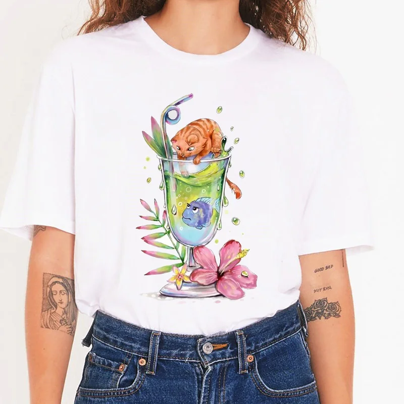 Женская одежда, милая Базовая летняя одежда с мультяшным принтом ка...