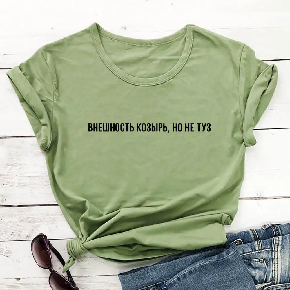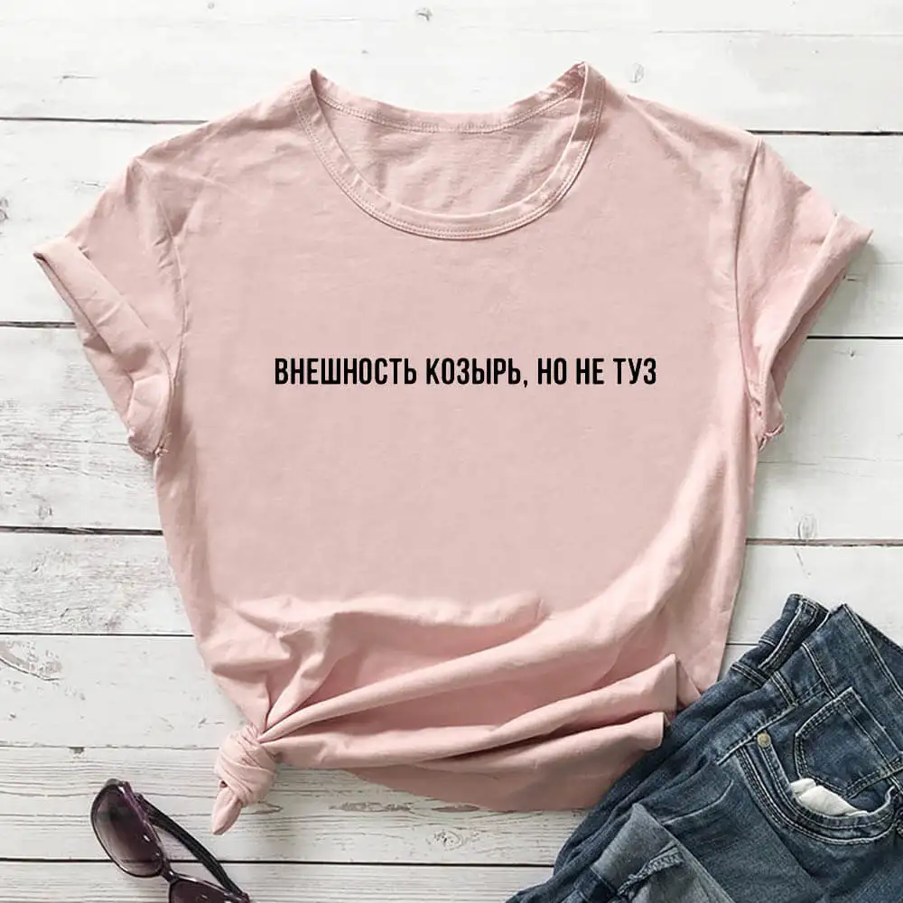 Внешность козырь русская буква печать новое поступление женская прикольная летняя хлопковая футболка с коротким рукавом майка женская футболка