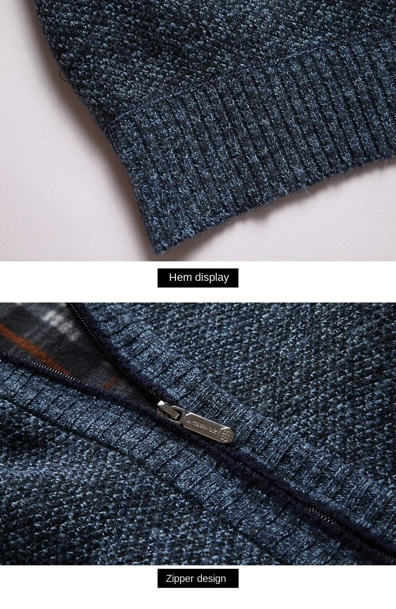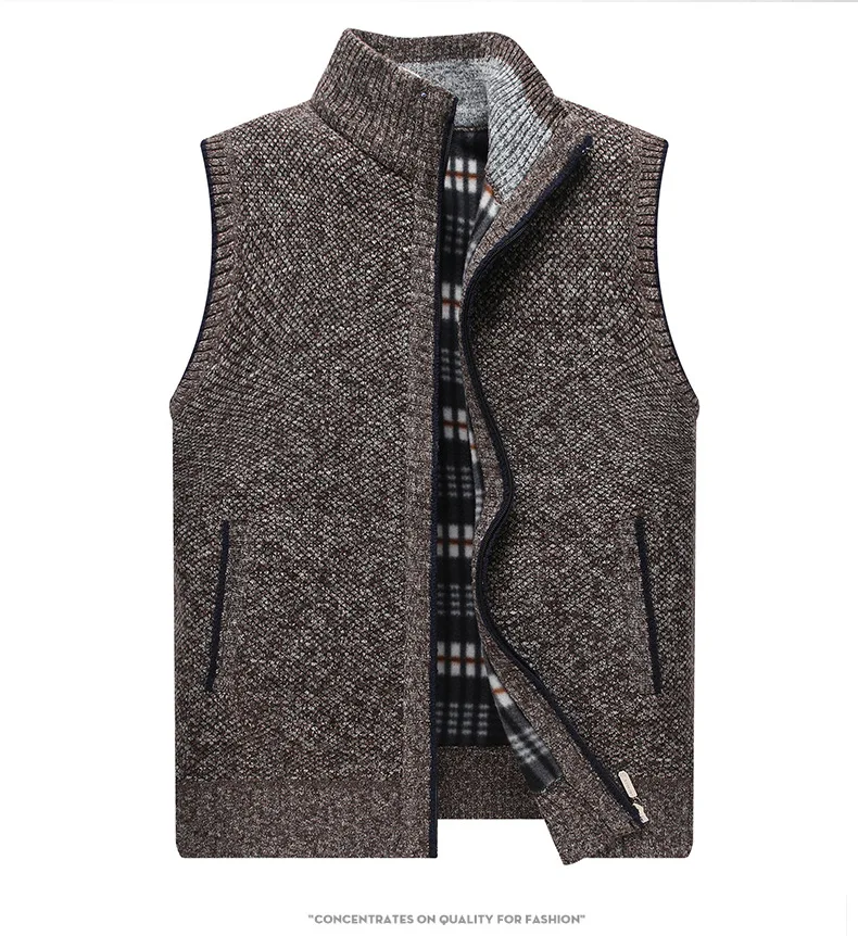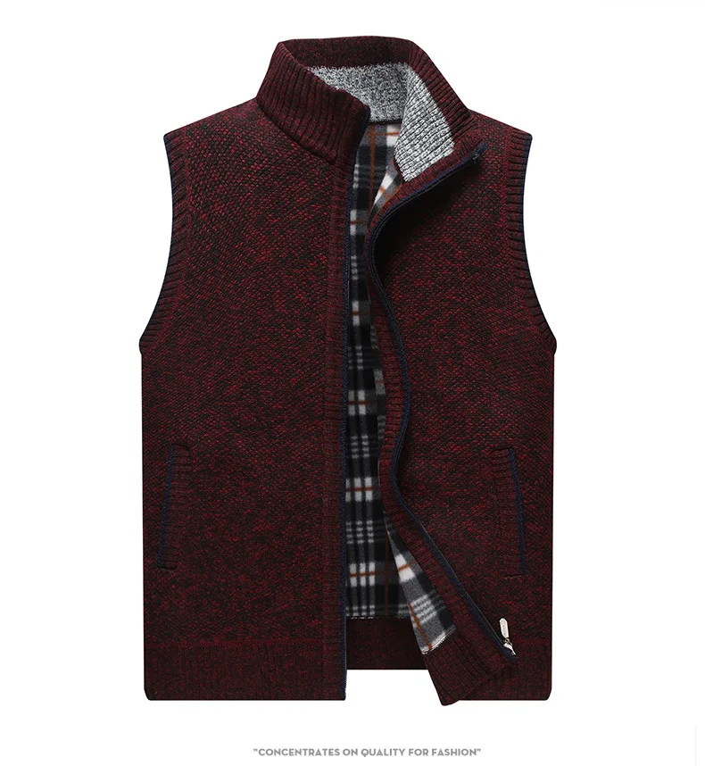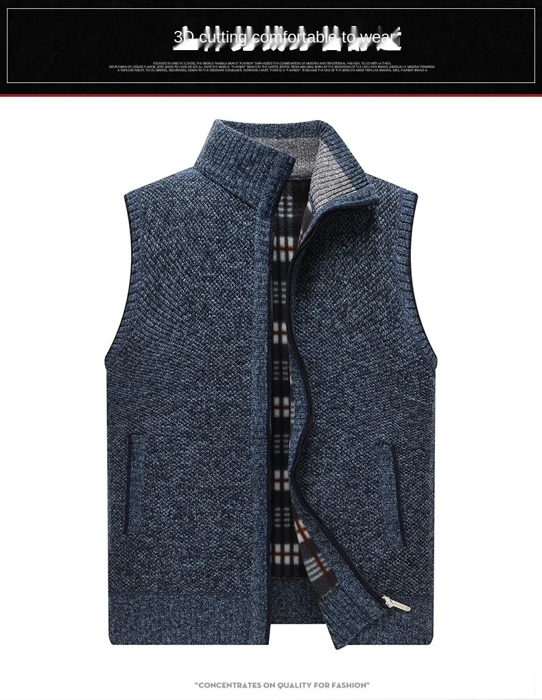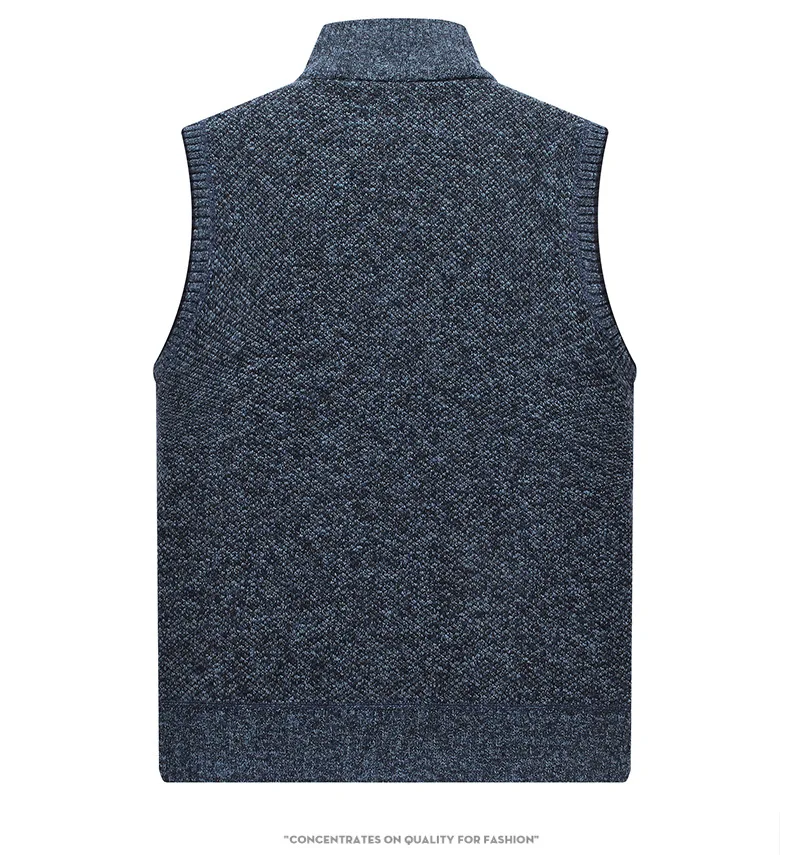 Кардиган, свитер, жилет с воротником-стойкой, утепленный флисовый свитер большого размера для мужчин среднего и пожилого возраста, вязаный свитер на молнии