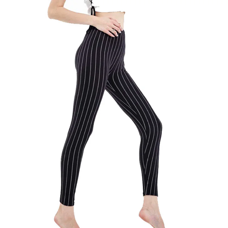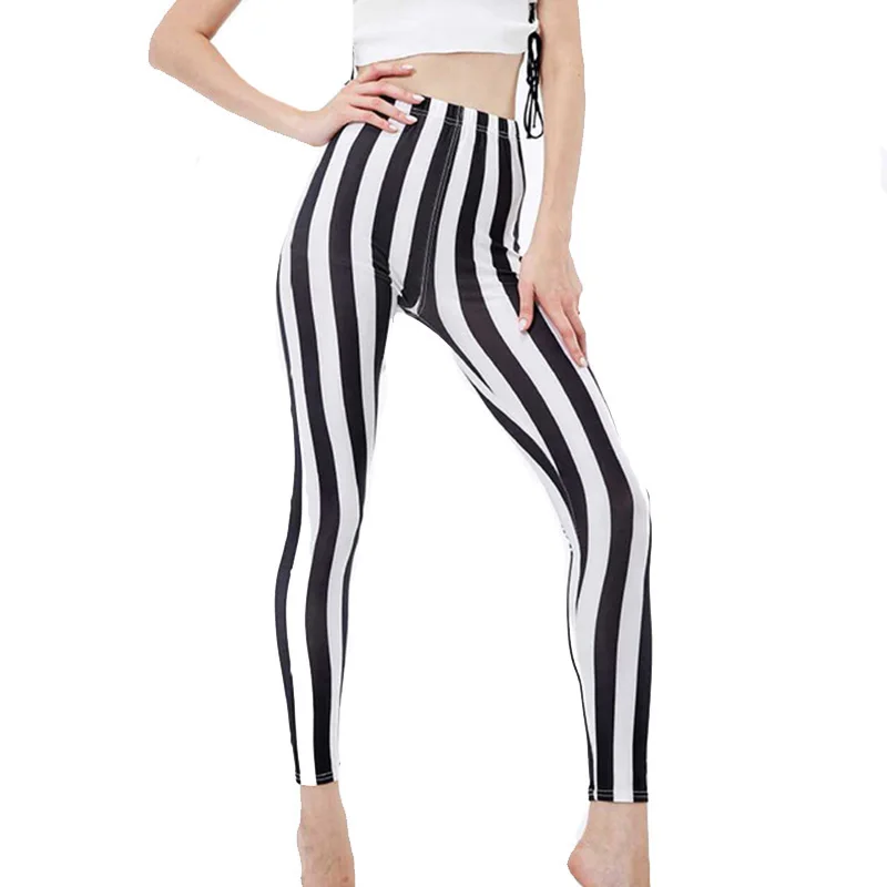 Леггинсы женские с принтом в полоску, пикантные спортивные брюки с эффектом пуш-ап с завышенной талией, эластичные брюки для фитнеса, черные белые