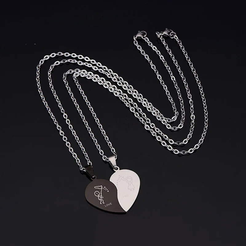 Парные подвески для мальчиков и девочек, Черное и белое ожерелье с прострочкой, простой подарок дружбы, Золотой в форме сердца, милое ожерелье с ювелирными изделиями для пар