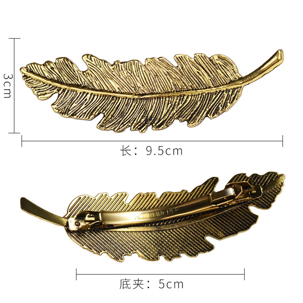 Новинка, Винтажная заколка для волос из сплава, металлическая заколка-пряжка в форме листа из перьев для женщин, аксессуары для волос