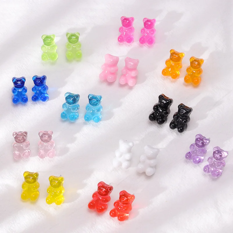Серьги-гвоздики женские разноцветные в виде мармеладных мишек, 2020