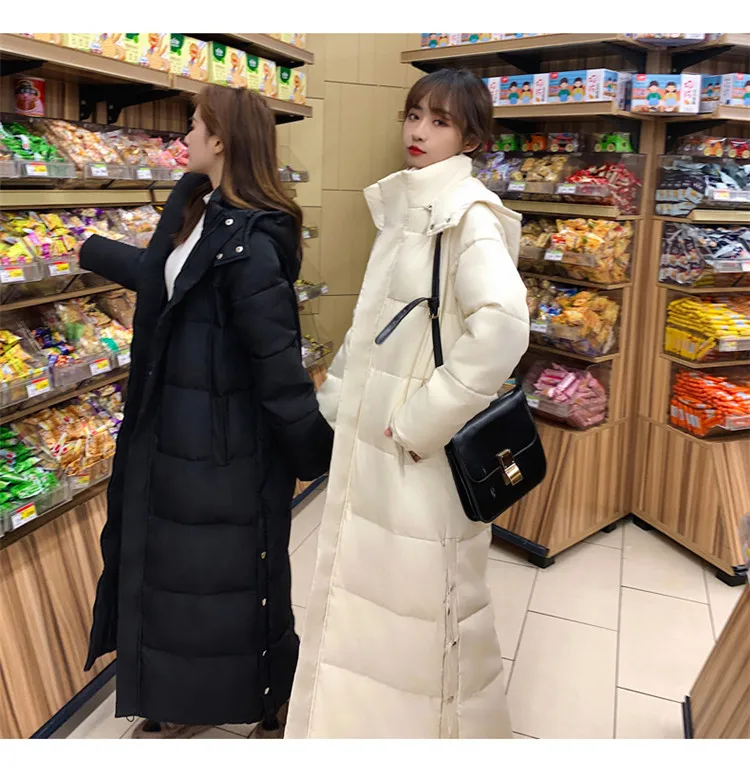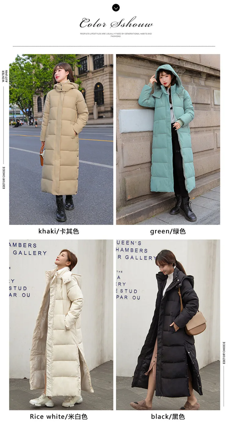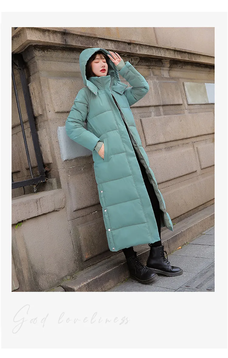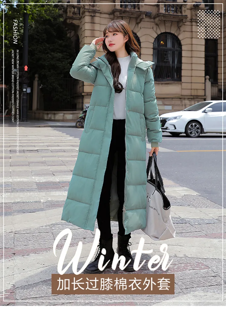 Женский пуховик с капюшоном, длинная парка большого размера из хлопка, Толстая теплая куртка, пальто в Корейском стиле, зима 2021