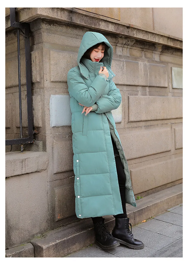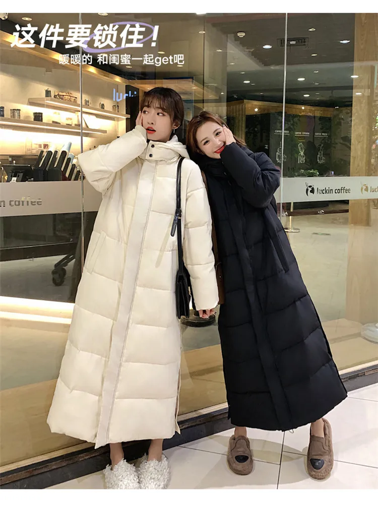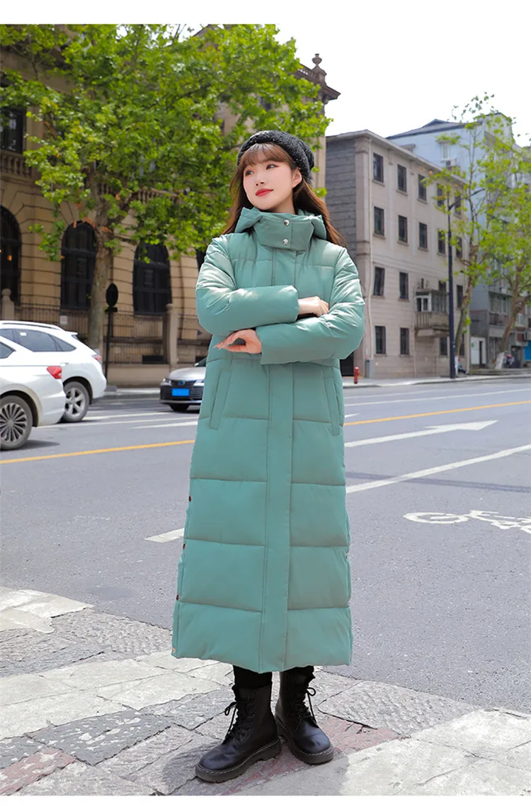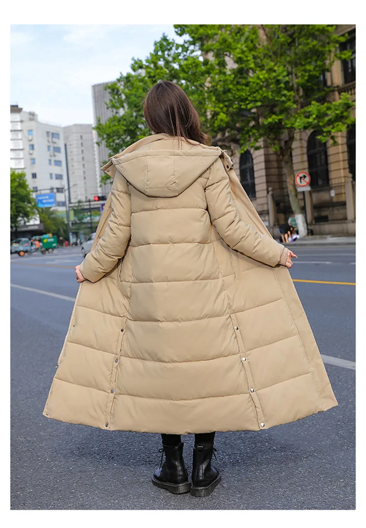 Женский пуховик с капюшоном, длинная парка большого размера из хлопка, Толстая теплая куртка, пальто в Корейском стиле, зима 2021