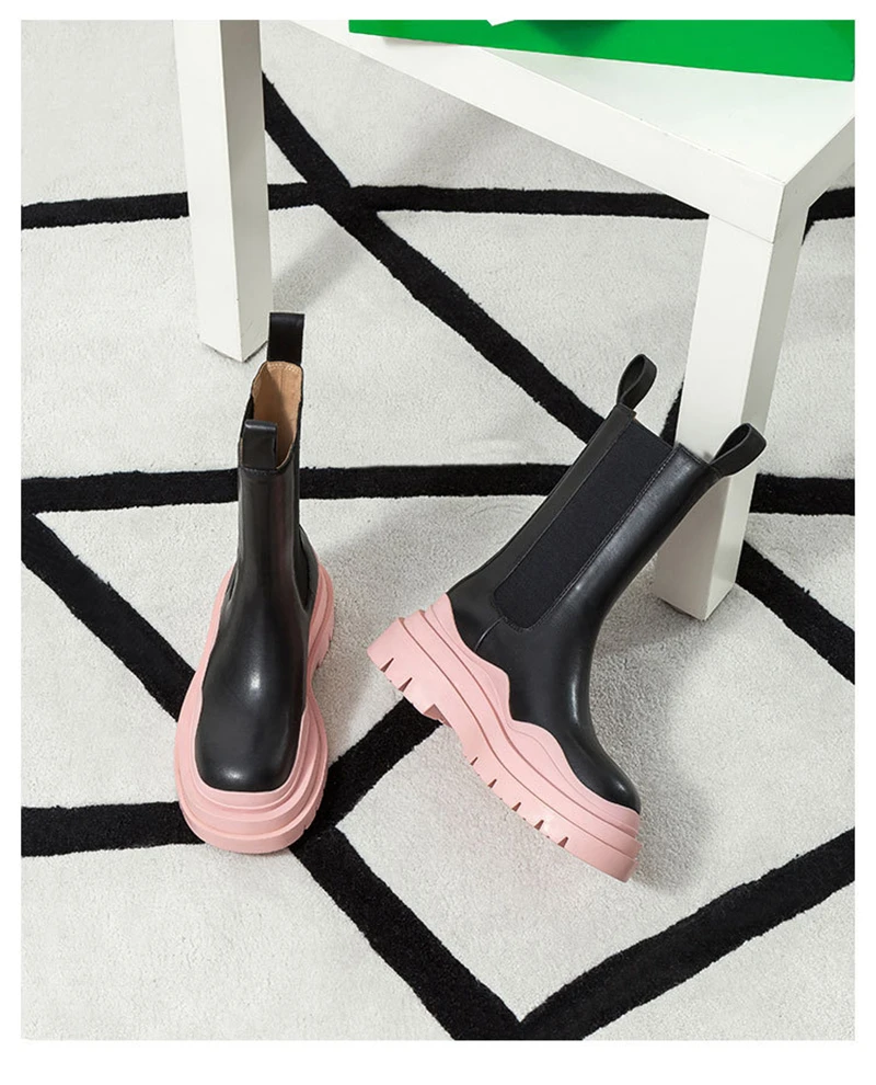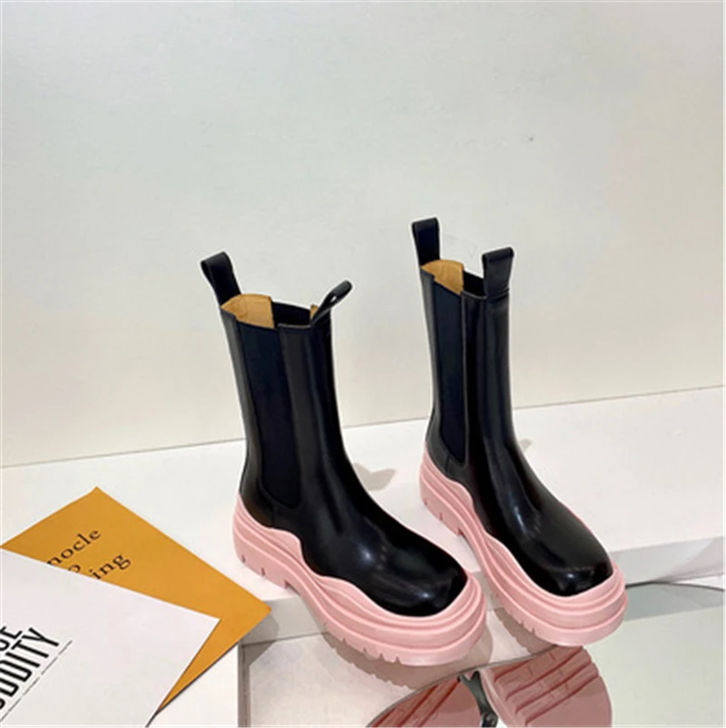 Ботинки женские зимние до середины икры, на толстой подошве, 2021
