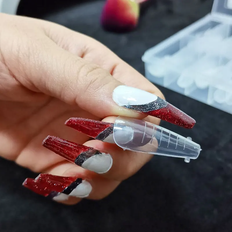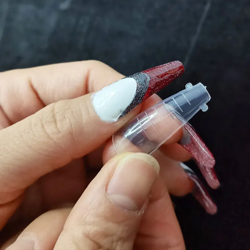 Метод наращивания ногтейИспользуйте советы по быстрому производству пресс-форм1. Слегка нанесите поверхность ногтя2. Нанесите очень тонкий слой базового покрытия и закрепите его под УФ/светодиодной лампой.3. Выберите подходящую форму и размер накладных ногтей.4. Нанесите Удлинительный гель на формы для ногтей, используйте ручку для дизайна ногтей с очищающим средством, чтобы сделать гель гладким.5. Приклейте его к реальному ногтю и убедитесь, что он полностью разрастается, и высушите его под УФ/светодиодной лампой.6. Удалите накладные Кончики ногтей, обрежьте форму и отполируйте ногти.7. Нанесите верхнее покрытие и закрепите его под УФ/светодиодной лампой.8. Дизайн ногтей с вашими удовлетворенными узорами.