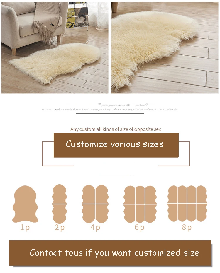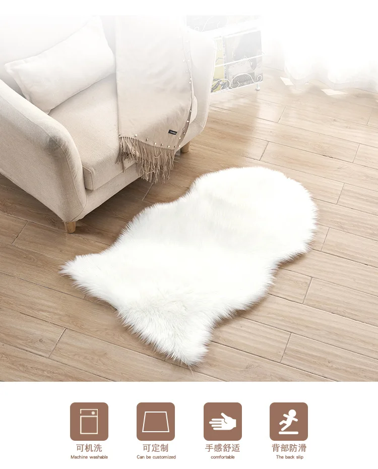 Название: мягкие коврики из искусственного меха овчиныДлина волос: около 5 ~ 6 смМатериал: акрил, смесь искусственного меха,Задняя часть ковра: задняя часть из композитной замши, мягкая, не повреждает деревянный пол.Подходит для: гостиной, спальни, кабинета, детской комнаты, Кабинета/столовой/гостиницы/офиса.Преимущества: комфортное ощущение, высокая эластичность, антиобрастающая и статическая обработка. Нетоксичный, экологически чистый, без формальдегида, без выпадения волос, без обесцвечивания, относится к высококачественным материалам, обладает высокой стоимостью.[Сфера применения]: гостиная, столовая, спальня, кабинет, коридор, прихожая, прикроватная тумбочка и т. д.Особенность:* Простой в уходе и долговечный делает этот экологичный ковер для дома в спальне настоящей ценностью.* Этот Противоскользящий ковер приятен на ощупь, его легко чистить и обслуживать.* Добавьте шикарного свежего штриха в вашу любимую комнату, соедините новые и старые части и вдохните новую жизнь в ваш дом с этим противоскользящим ковром Украсьте пол в гостиной в переходном стиле с этим противоскользящим ковром.* Эти напольные коврики защитят весь ковровый пол от повреждений и позволят легко и плавно перекатывать от задачи к задаче в рабочем пространстве или дома.