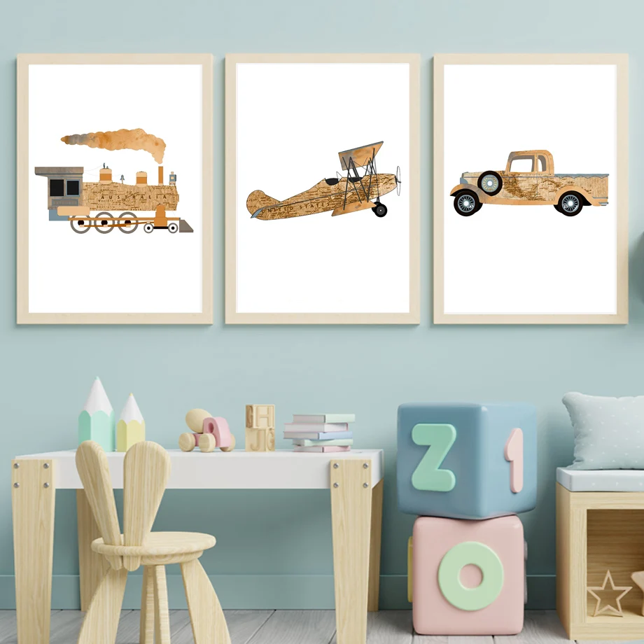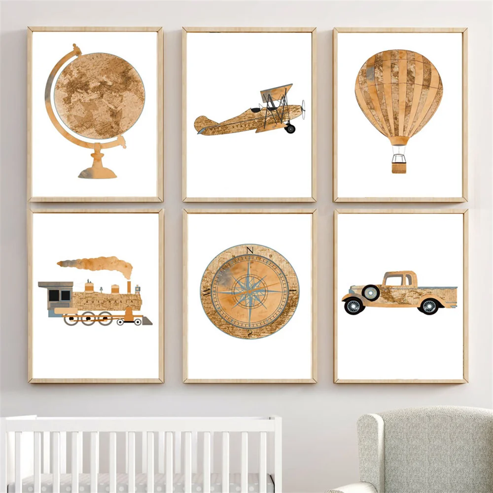 Плакаты с компасом, шарами, самолетом, поездом, ретро-постеры для детской комнаты в скандинавском стиле, художественная живопись на холсте, настенные картины для декора детской комнаты