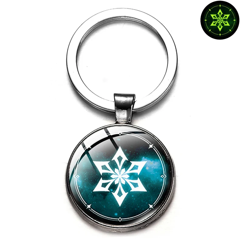 Брелок для ключей с изображением светящегося Божьего глаза Genshin, воды, ветра, грома, огня, скалы, льда, светящегося стекла, фото, ювелирные изделия, косплей