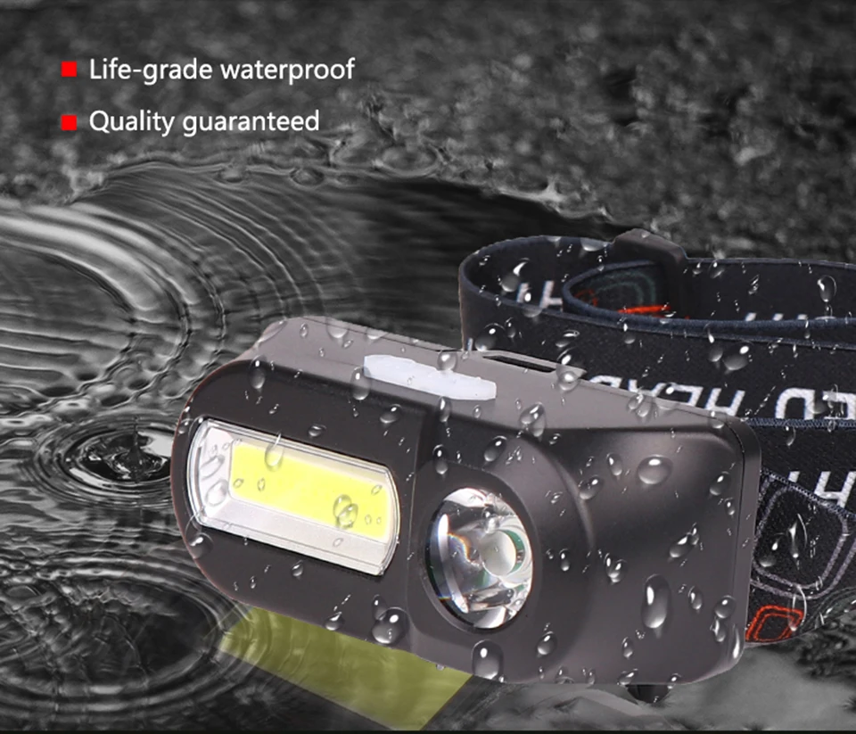 Налобный фонарь XPE + COB светодиодный, переносной, водонепроницаем...