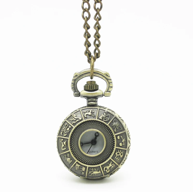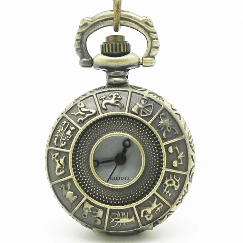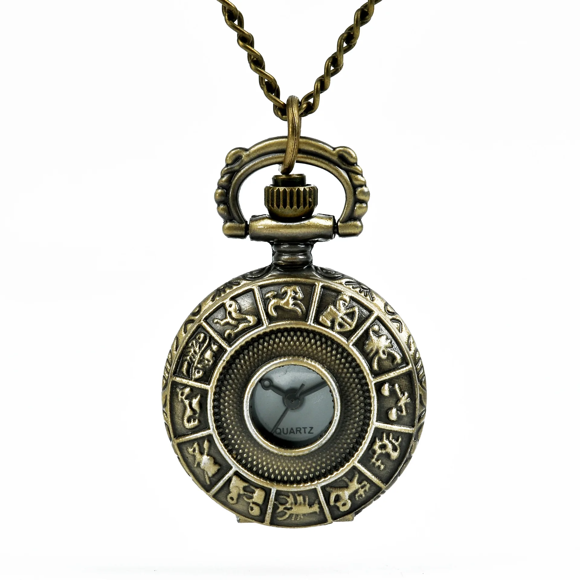 10 шт.лот Оптовая Продажа стимпанк двенадцать созвездий Зодиак Ретро Флип карманные часы ожерелье кулон рекламный подарок