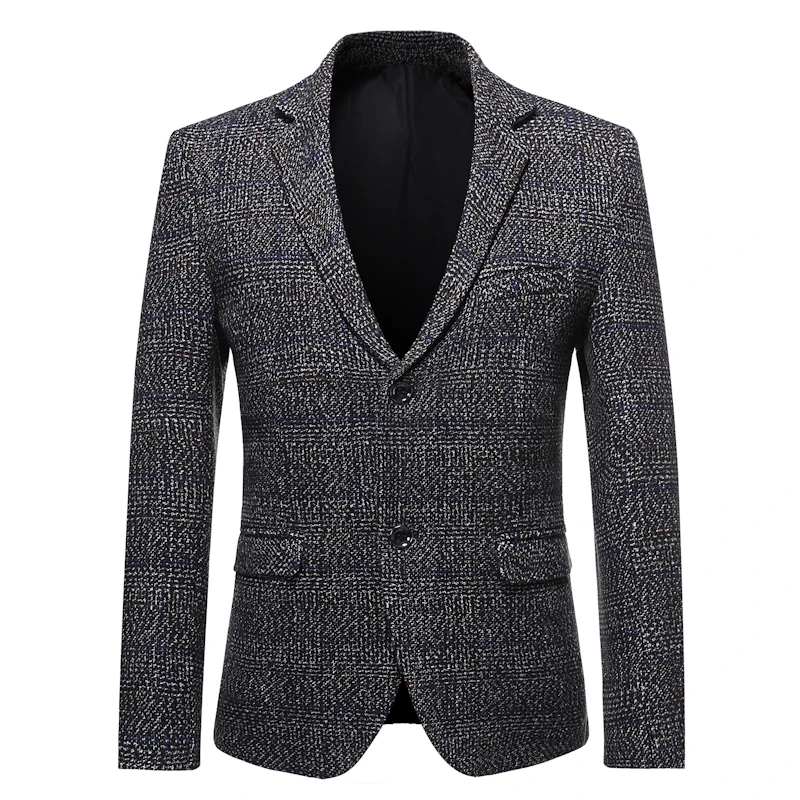 Новинка 2022, модное мужское повседневное деловое шерстяное пальтоМужские приталенные блейзеры в клетку, куртка