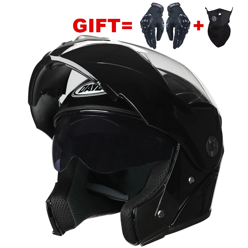 Мотоциклетный шлем, модульный защитный шлем с двойными стеклами, на все лицо, для гонок, 2 подарка