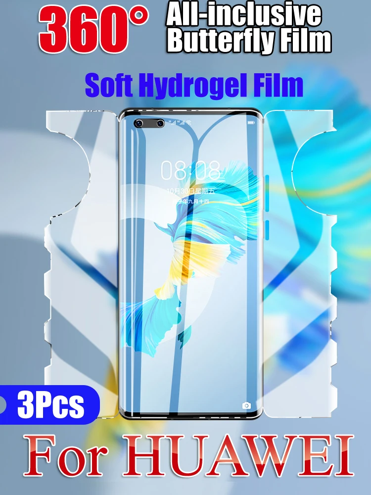 Гидрогелевая пленка для Honor 60 50Pro 3 в 1 P50Pro + Защитная пленка с бабочкой для Huawei P40 P30 Pro Mate40Pro 30EPro 20Pro