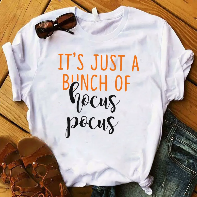 Женская футболка с рисунком ведьмы, фокуса, покуса, забавная футболка с коротким рукавом для Хэллоуина, женская футболка