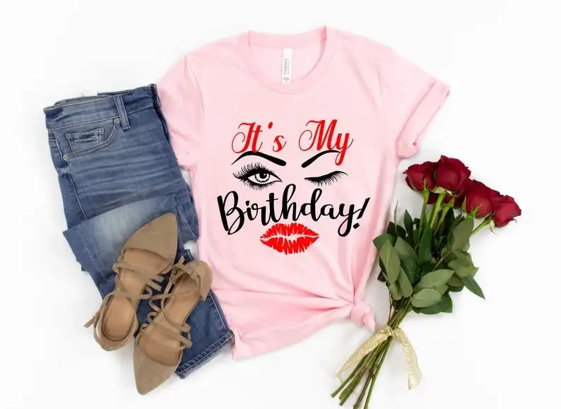 Рубашка для вечевечерние НКИ в честь Дня рождения с ресницами и губами, топ с коротким рукавом в подарок Моя королева, футболки размера плюс, одежда с круглым вырезом, уличная одежда из 100% хлопка