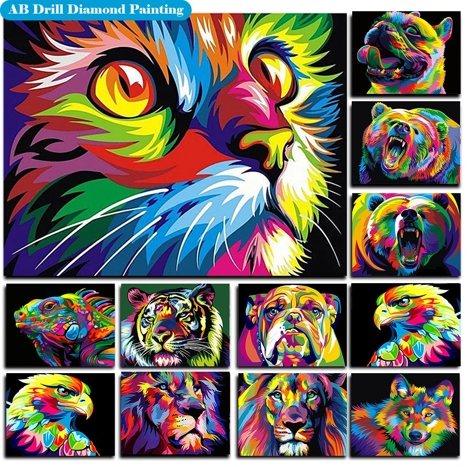 Наборы для алмазной живописи AB животные квадратныекруглые цветные ...
