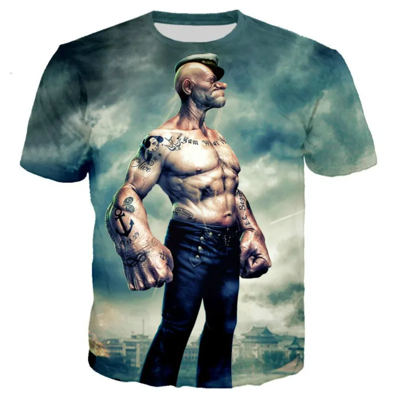 2021 летняя мультяшная анимация Popeye 3D печать модная мужская и ж...