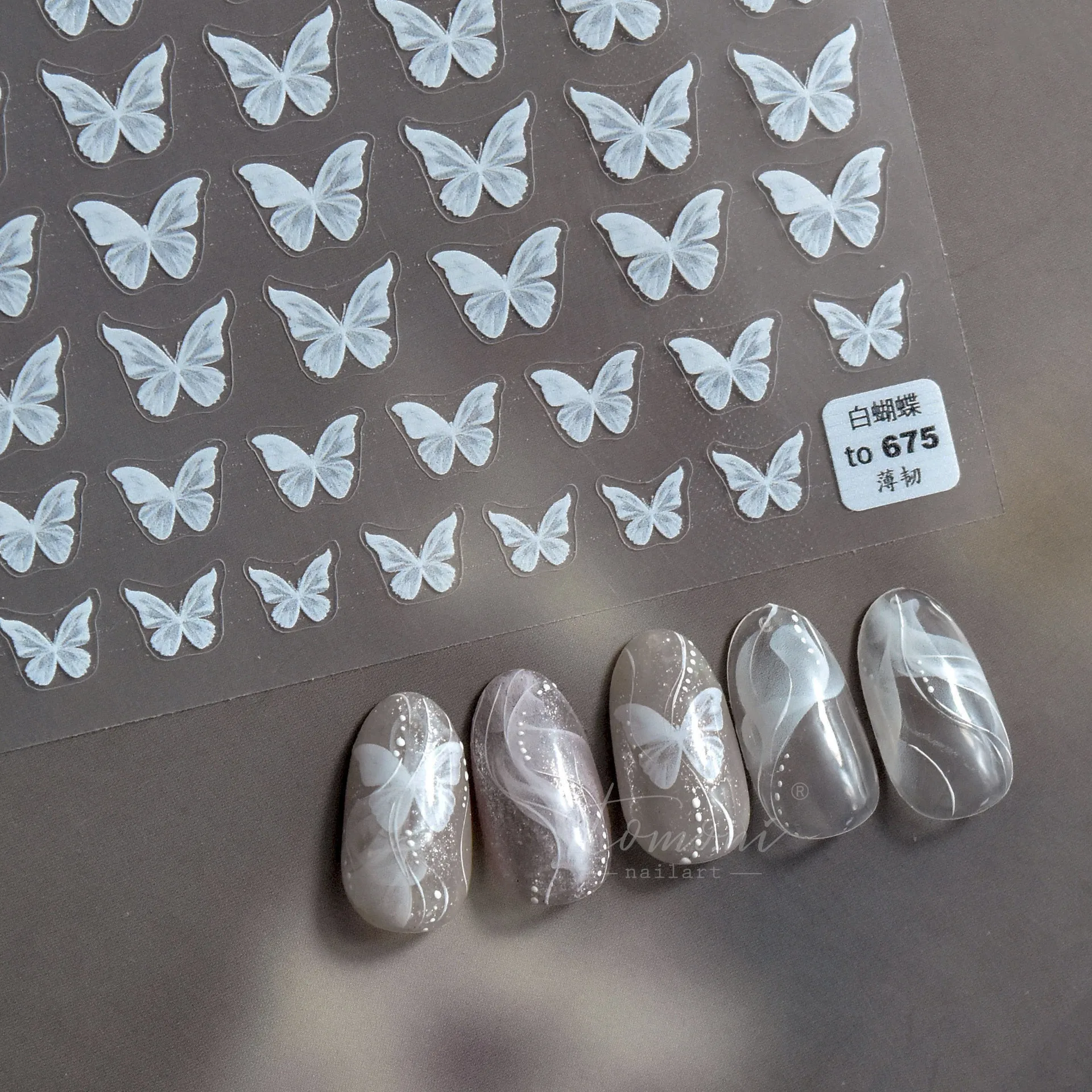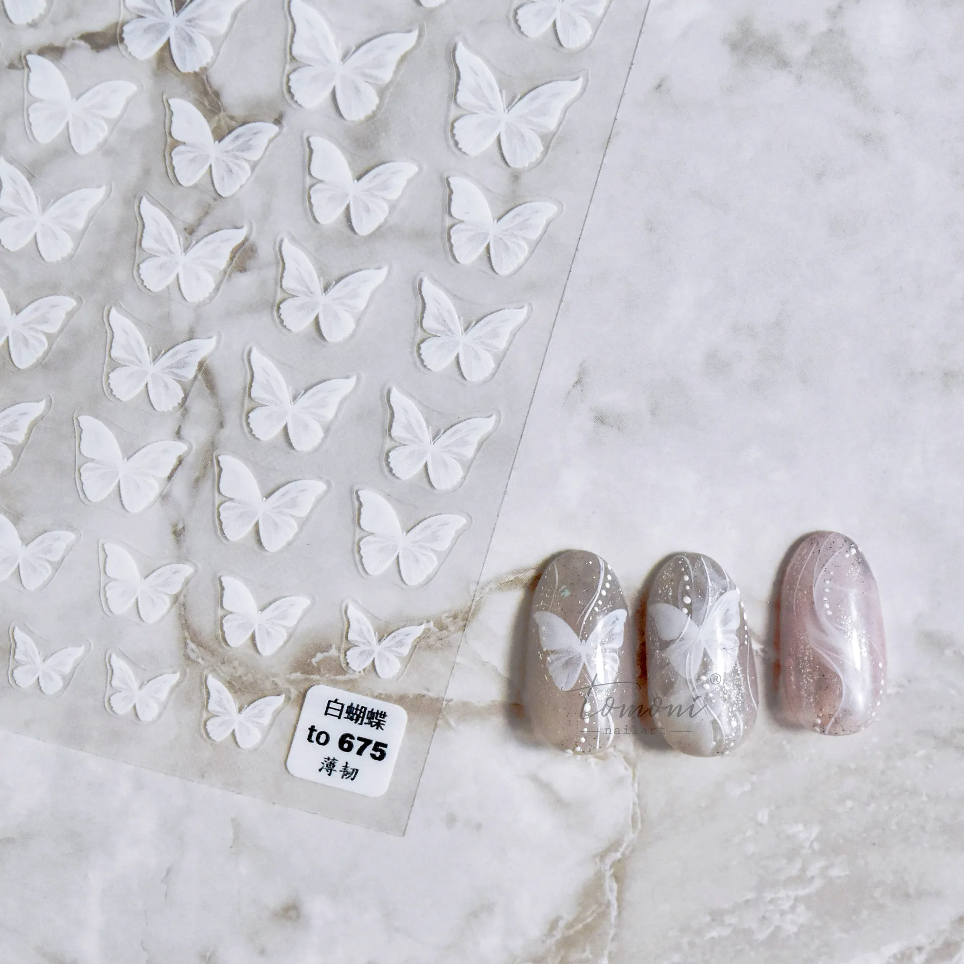 Рельефные ультратонкие наклейки для ногтей 5D, белые полупрозрачные...