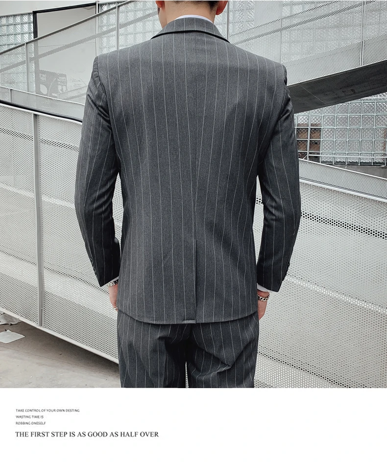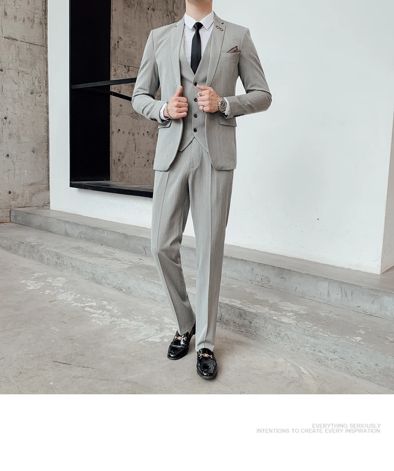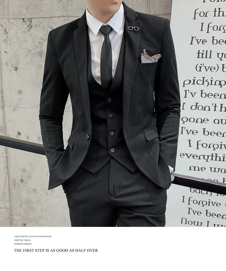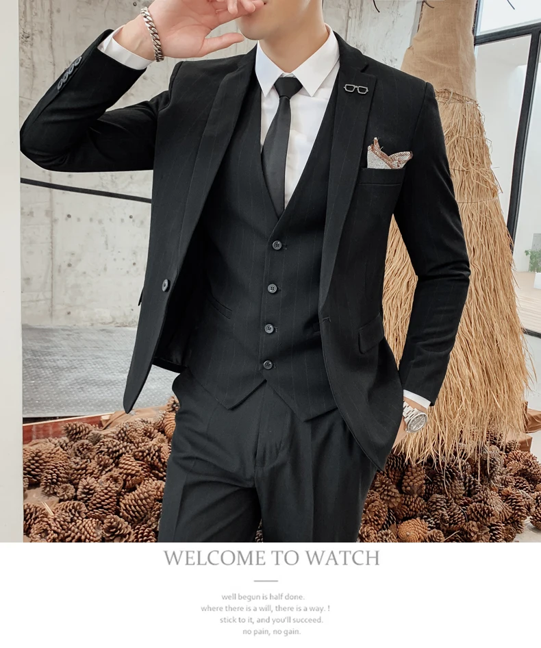 Пиджак и брюки, жилет, комплект из 3 предметов, модный мужской повседневный деловой облегающий костюм из бутика в полоску, пальто, брюки, жилет, 2022