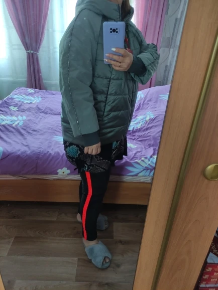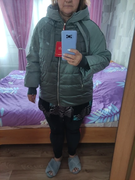 Куртка супер. Цвет очень хороший. НА 50 размер взяла 52 на этикетке 46 написано. Свободно удобно комфортно.
