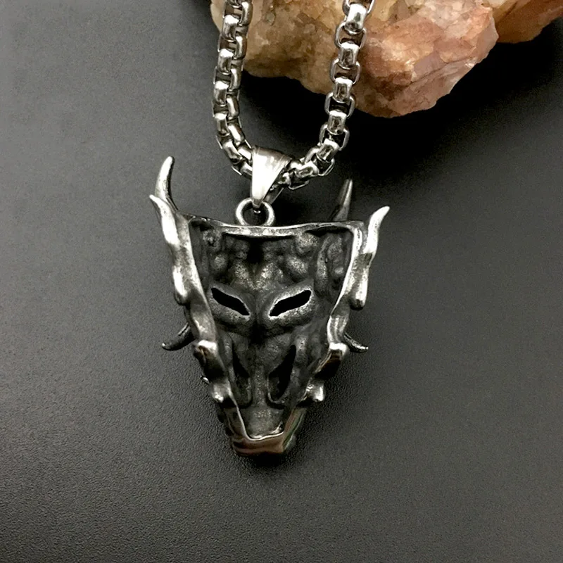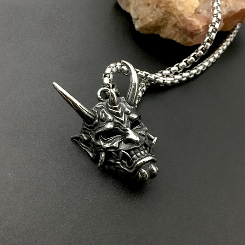 Ретро японское привидение пражины ожерелье с подвеской-маской для мужчин, модное байкерское ожерелье из нержавеющей стали, панк, хип-хоп, готические украшения