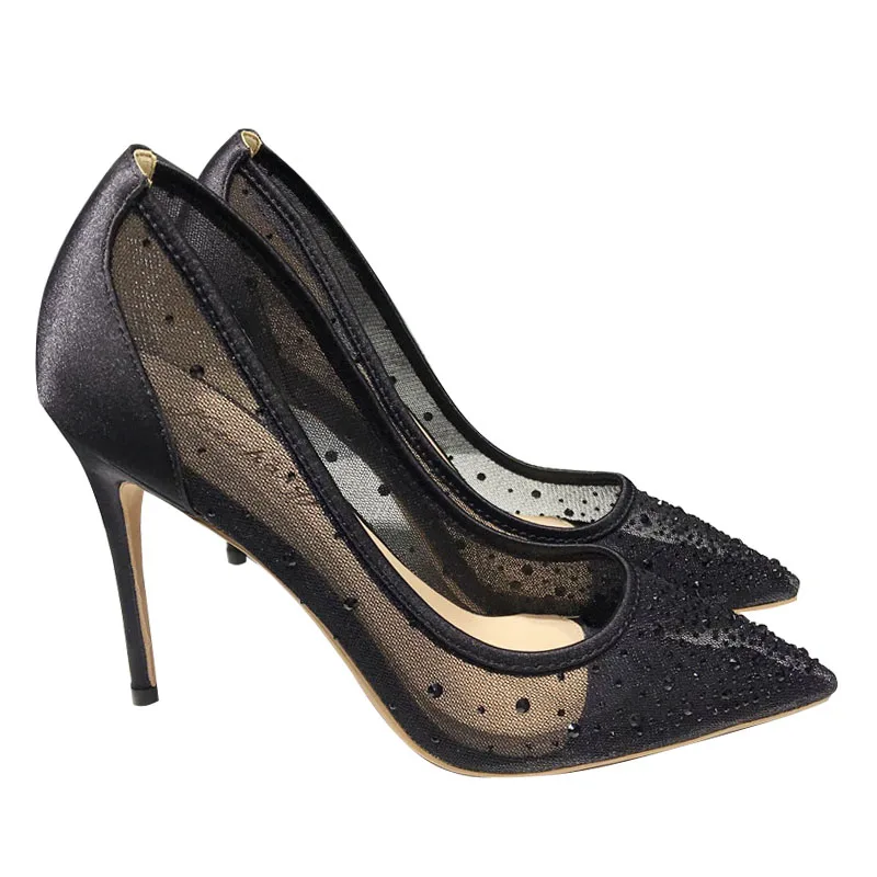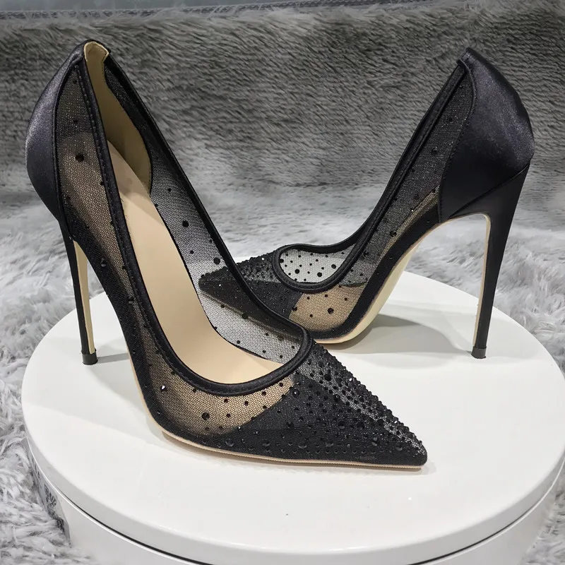 Цветочный салон с жемчугом и стразы для женщин, сексуальные свадебные туфли с сетчатыми блестками и каблуком alto12c