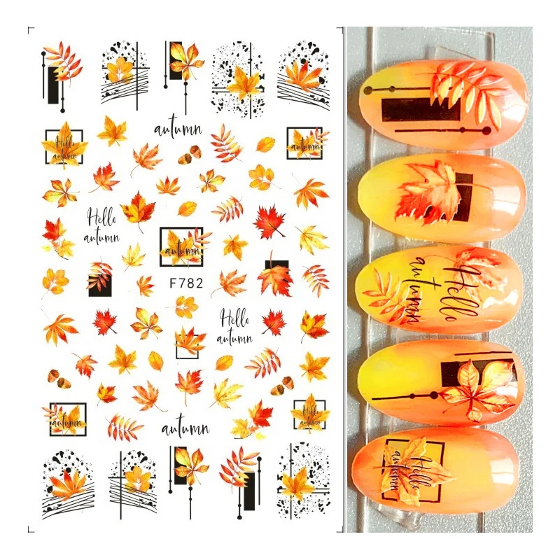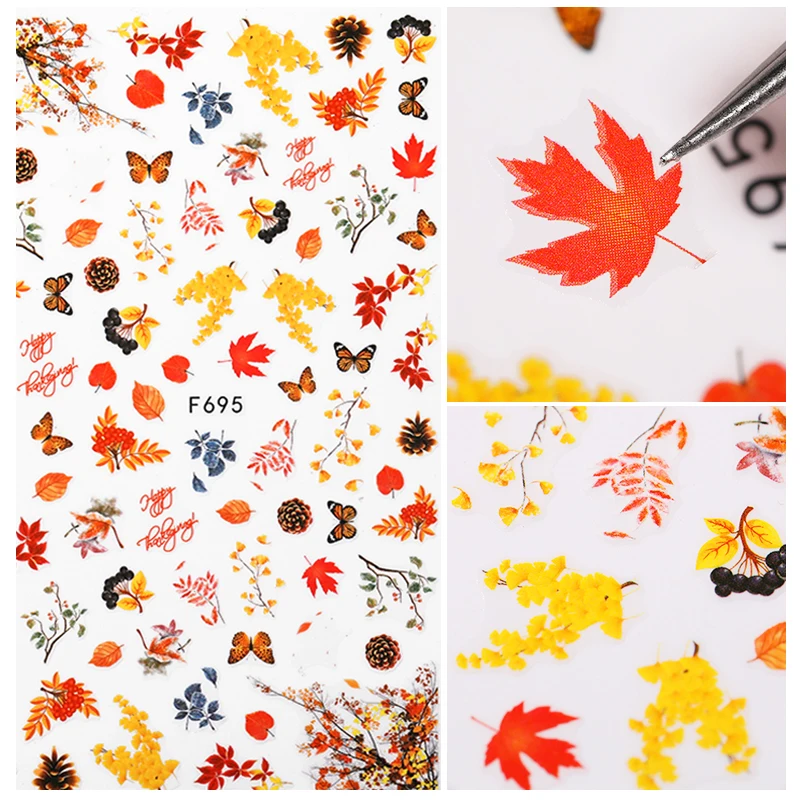 1 лист кленовые листья, 3D наклейки для ногтей, Слайдеры для ногтей с осенними листьями и цветами, самоклеящиеся наклейки для ногтей, наклейки для маникюра на осень