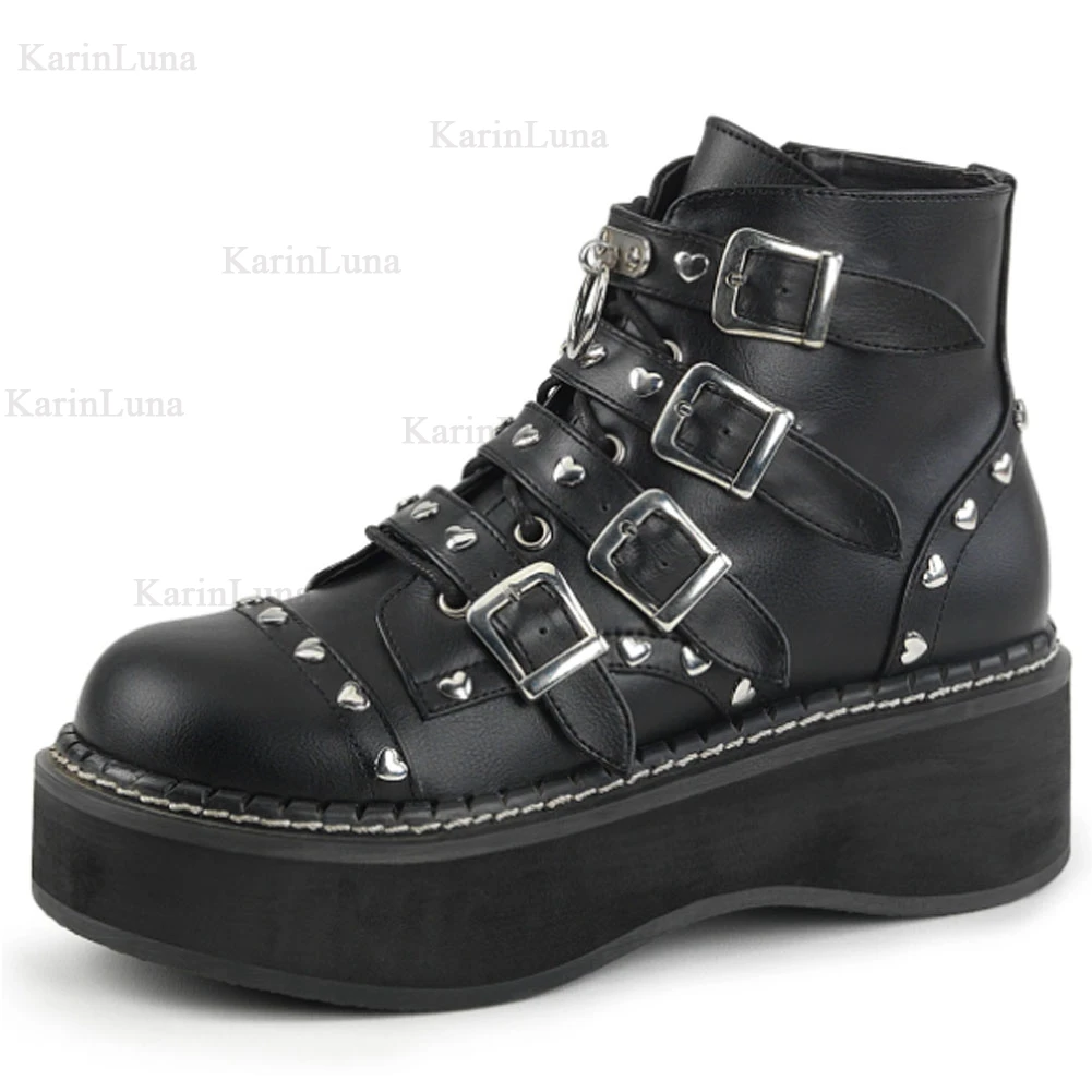 Женские мотоциклетные ботинки SaraIris, черные ботинки на платформе...