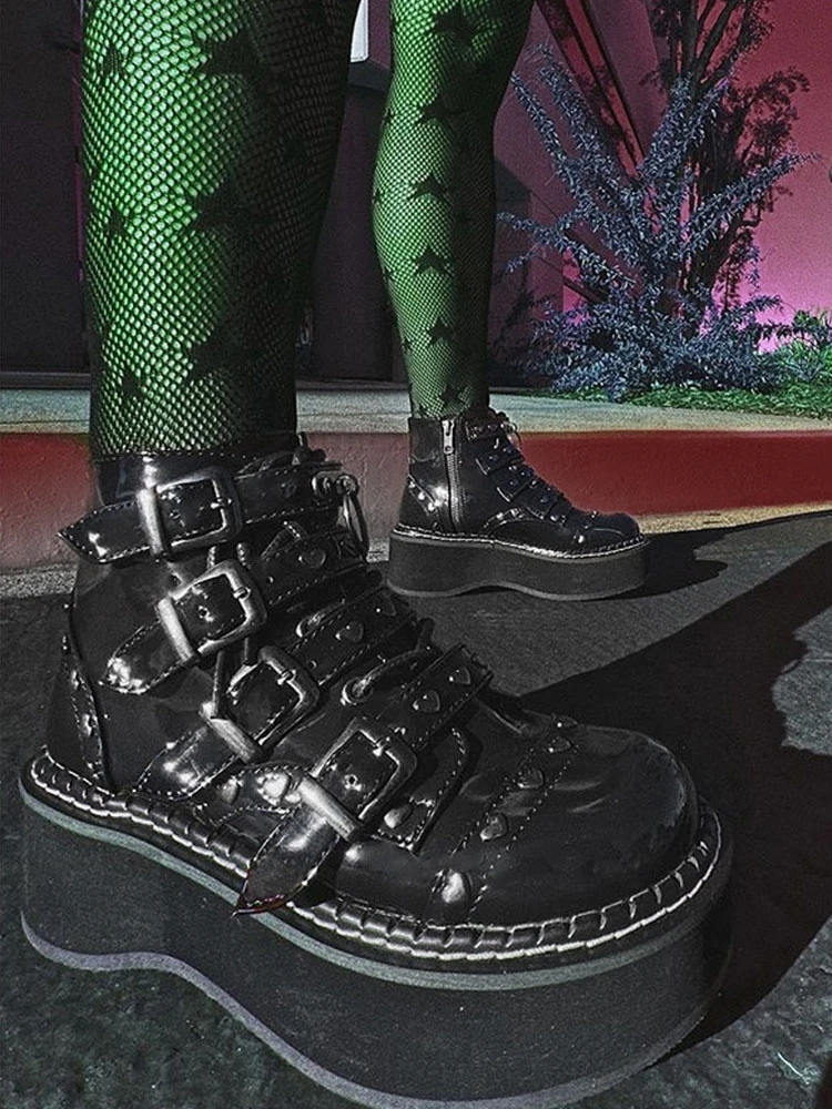 Женские ботинки до середины икры, в готическом стиле, на плоской платформе, с пряжкой