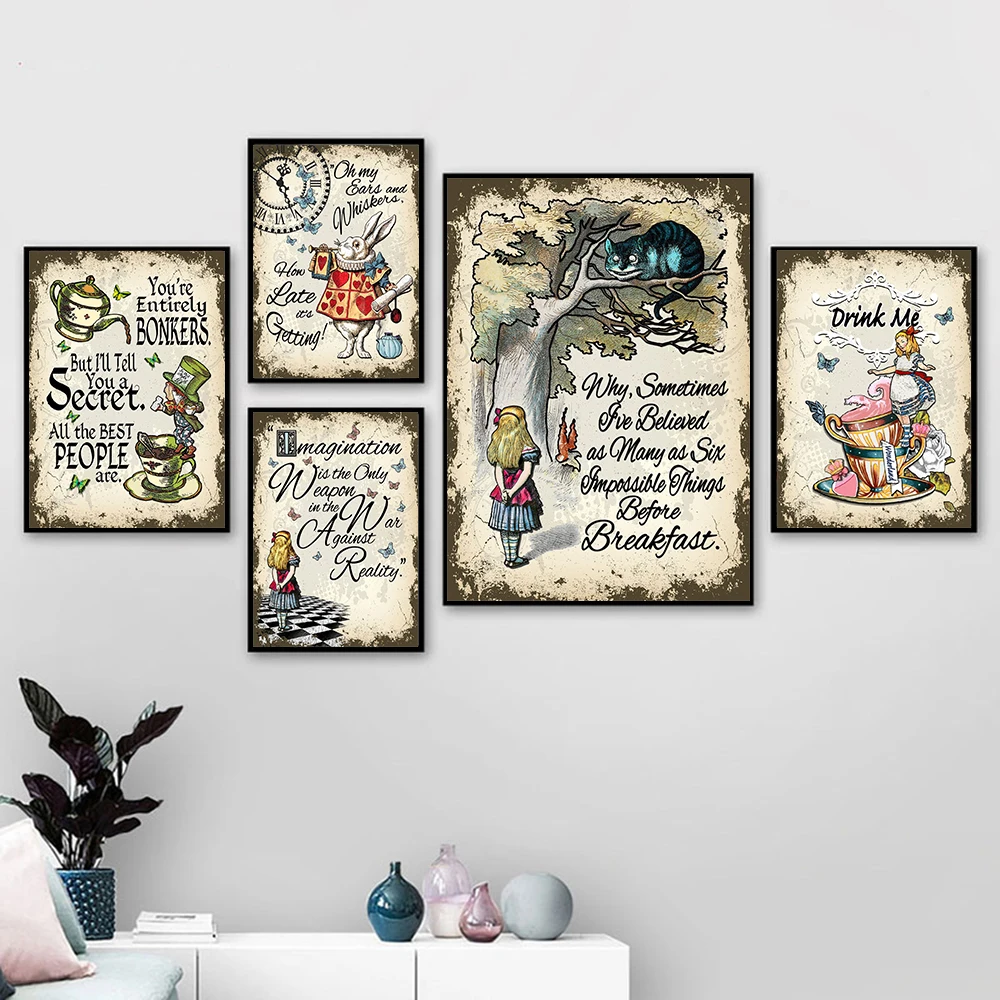Настенный постер с изображением страны чудес, кошки, кролика, чая, акварели, винтажные сказки, Картина на холсте, для гостиной, домашний декор, принты