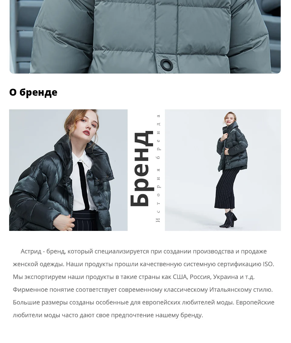 Astrid 2021 Зима Новое поступление зимняя куртка пуховик для женщин...