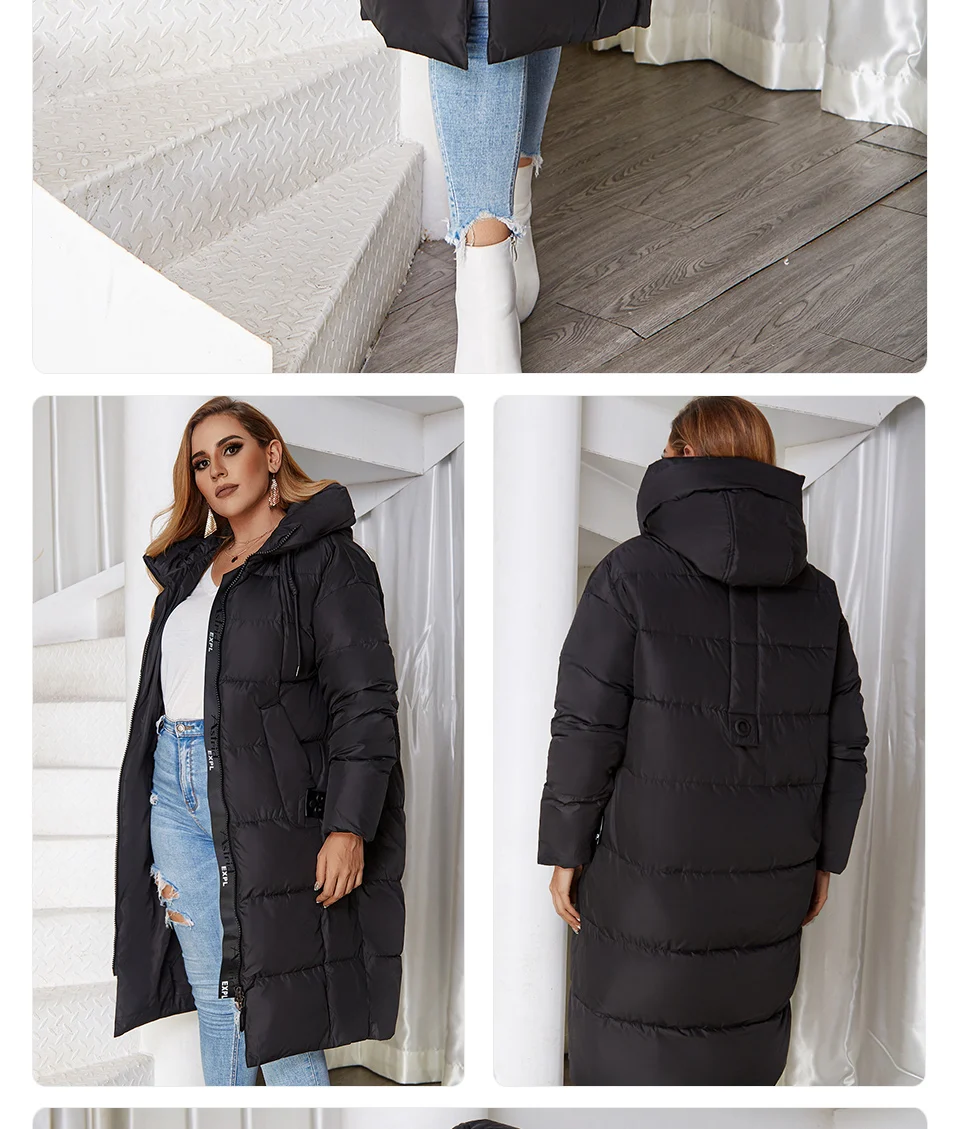 Куртка женская зимняя, с капюшоном, длинная, теплая, 2021