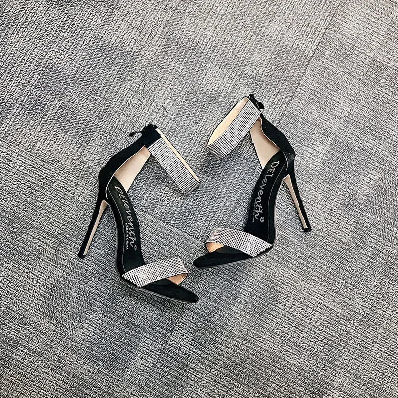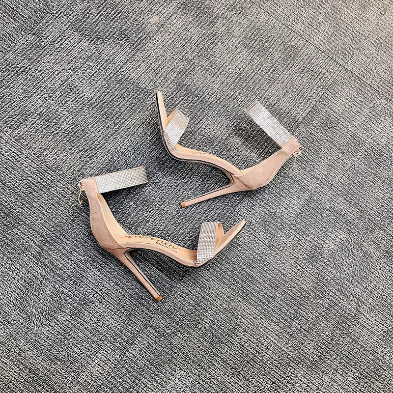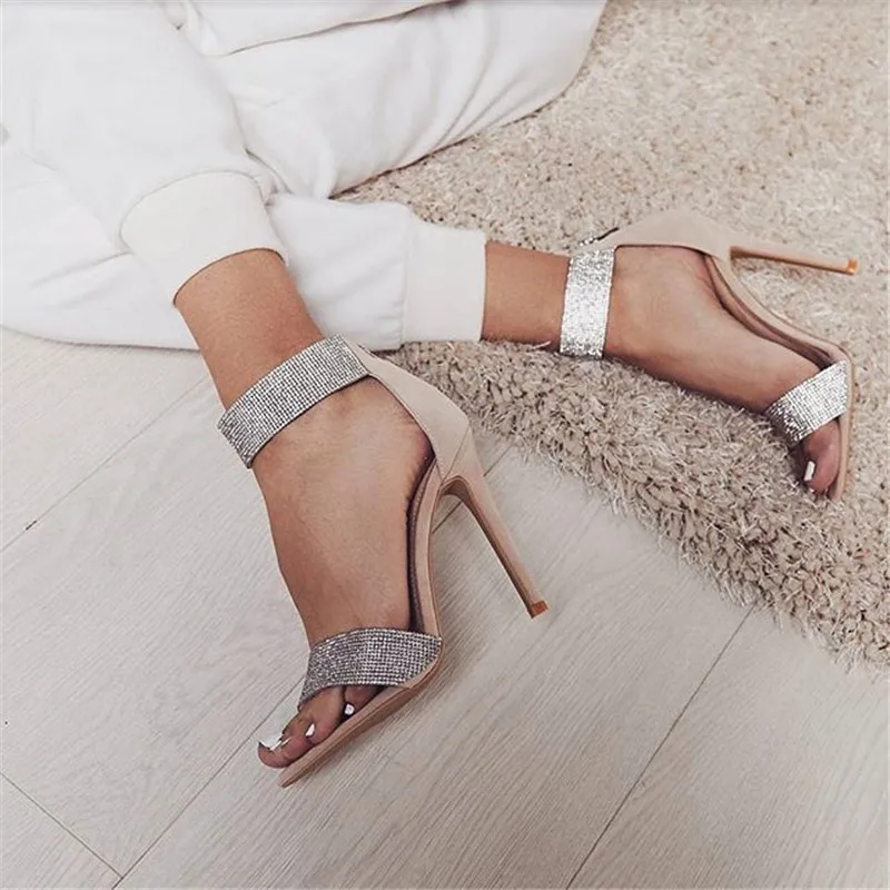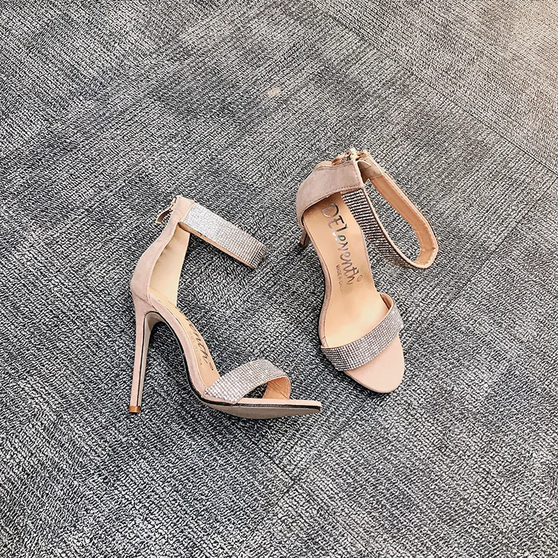 Женские босоножки на высоком каблуке, сандалии абрикосового и черного цвета со стразами, Клубные босоножки больших размеров 35-43, для лета, 2020