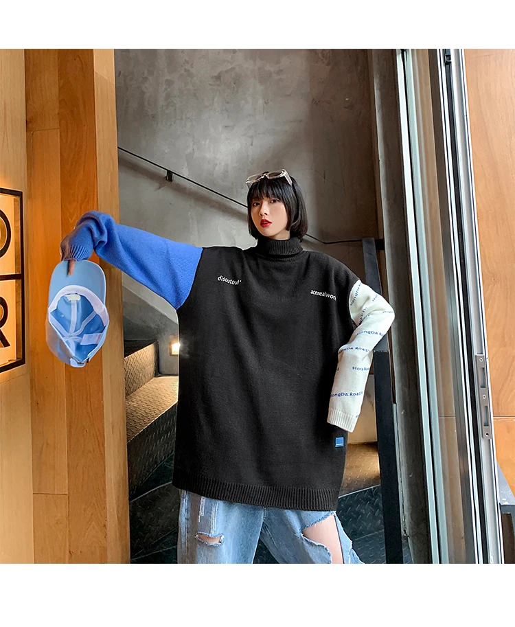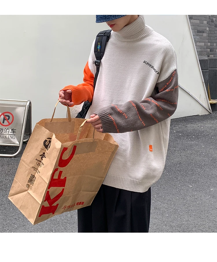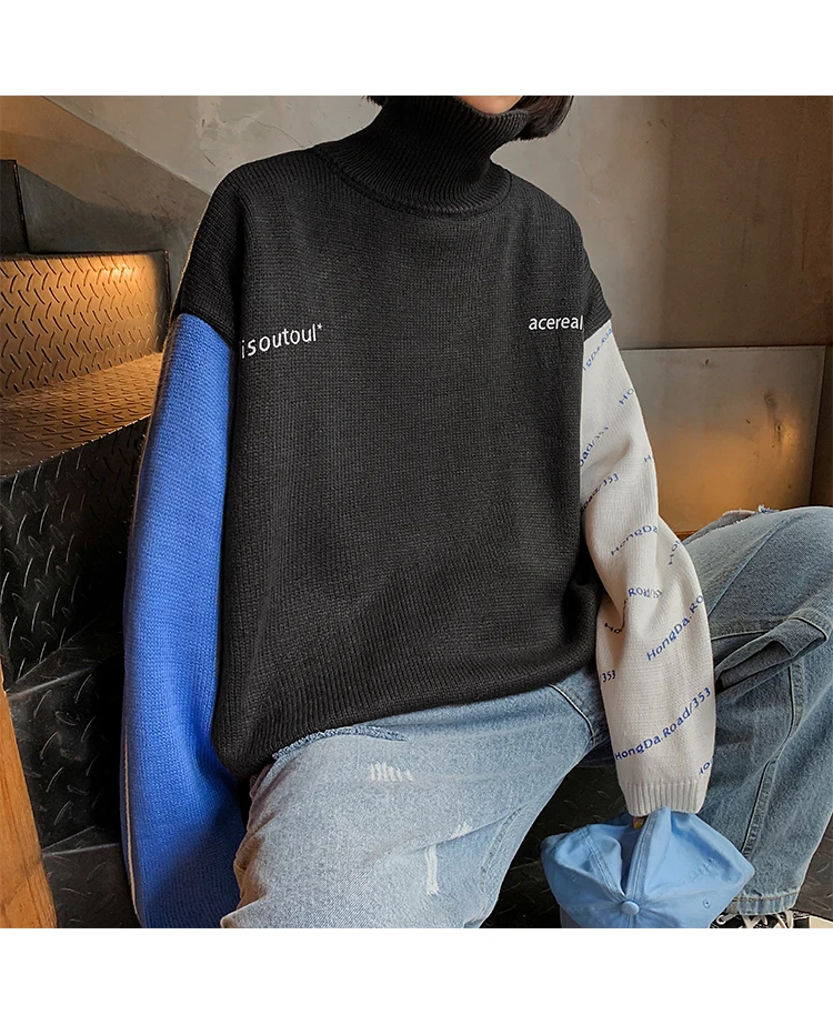 Мужская водолазка в стиле пэчворк LAPPSTER, свитер в стиле харадзюку, 2022, мужская уличная одежда оверсайз, вязаные свитера, мужские корейские модные пуловеры