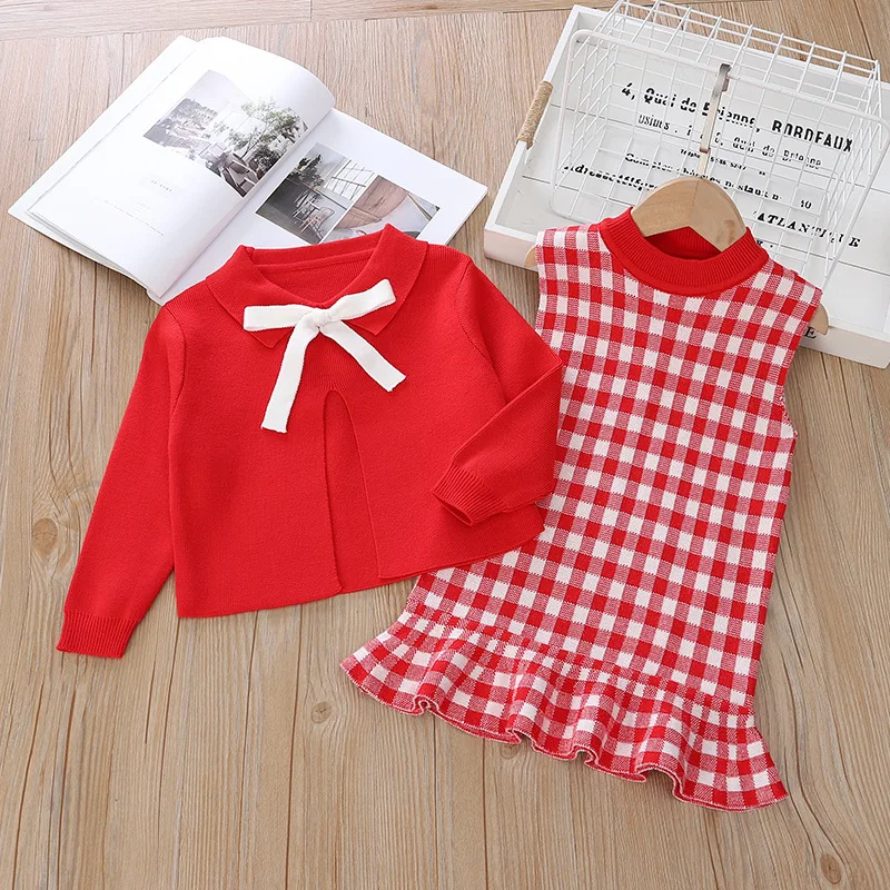 Костюм для девочек вязаный из Свитера и юбки, Осень-зима 2021
