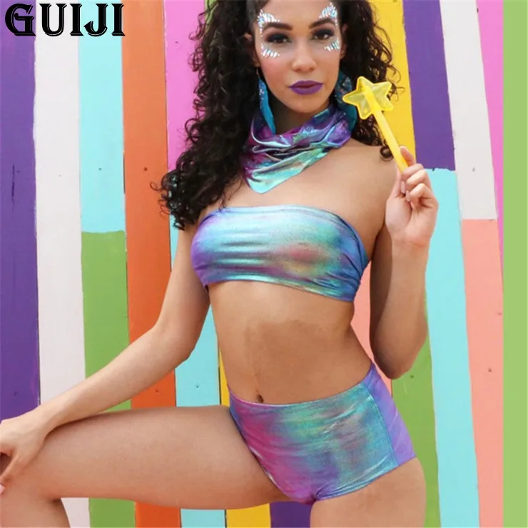 【GUIJI】Ready Stock 2021 сексуальный женский бандо Бикини Набор из трех частей купальник Боксеры Шорты женские бикини Бесплатная доставка
