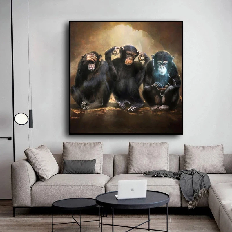 Картина на холсте Три забавных Orangutans, животное, обезьянка, искусство на стену, картина для гостиной, домашний декор, квадраты