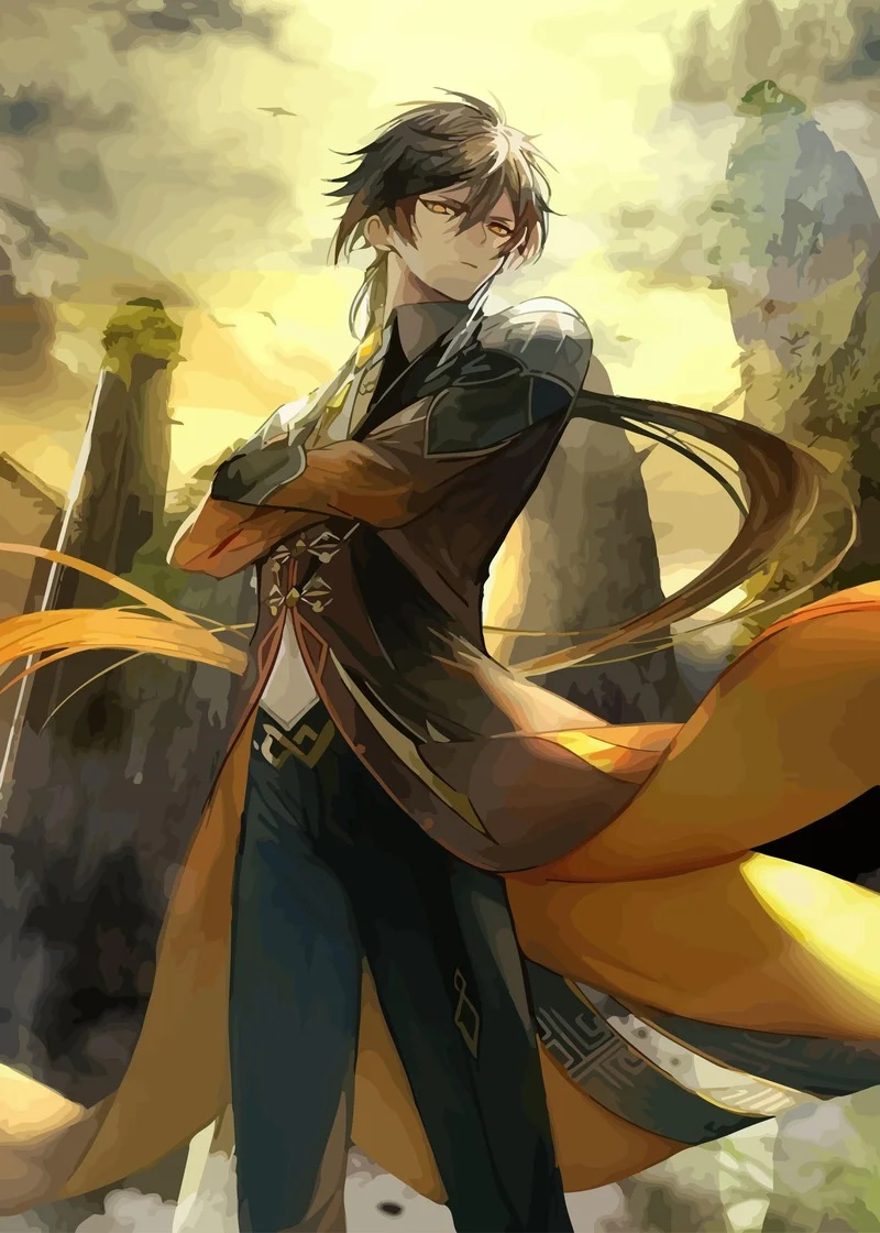 Аниме постеры WTQ Zhong Li, холщовая картина, постеры для игры Genshin Impact, Настенная картина, домашний декор, фотографии для детской комнаты