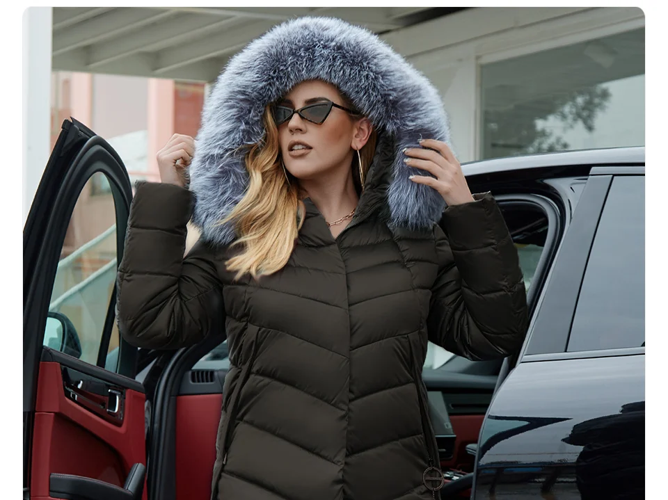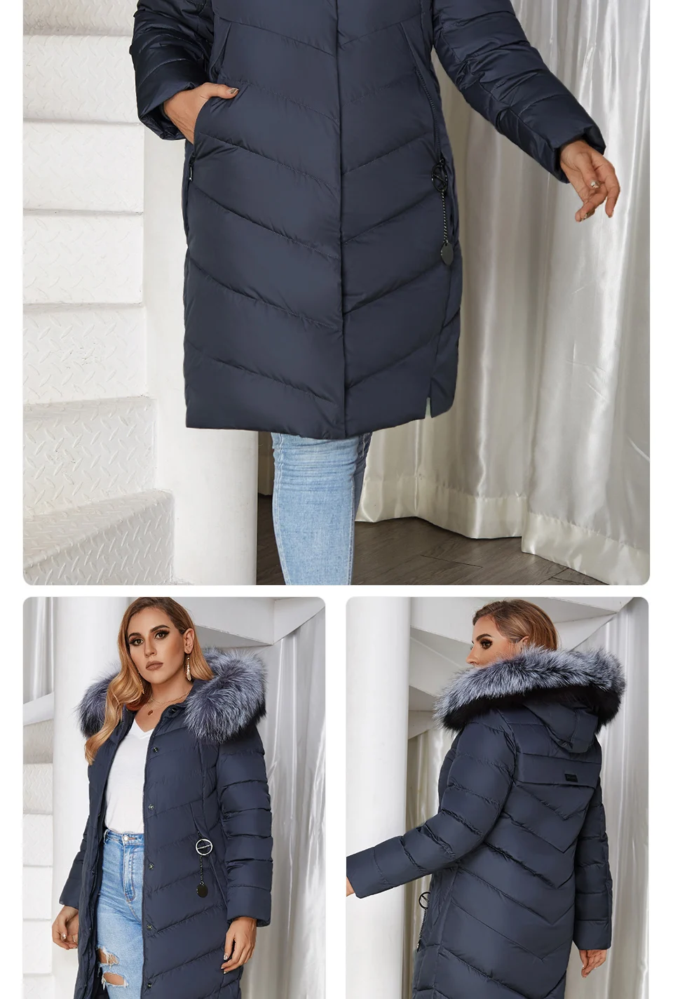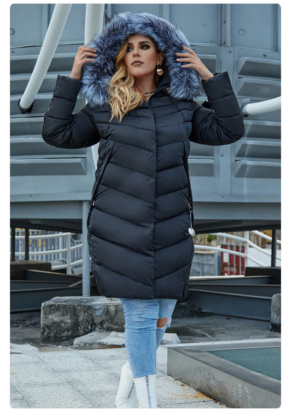 Пуховик женский зимний свободного кроя, с меховым воротником, 2021, размера плюс