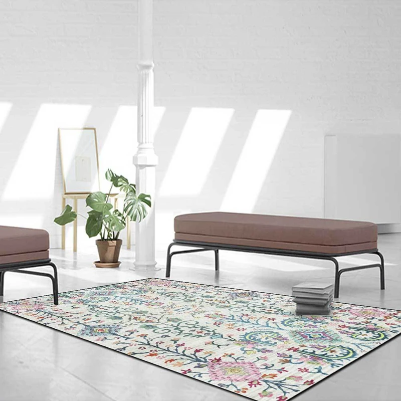 Напольные коврики в американском этническом стиле, нескользящий напольный мат для спальни, прикроватного столика, с геометрическим рисунком цветов, украшение для дома, гостиной, дивана, стола