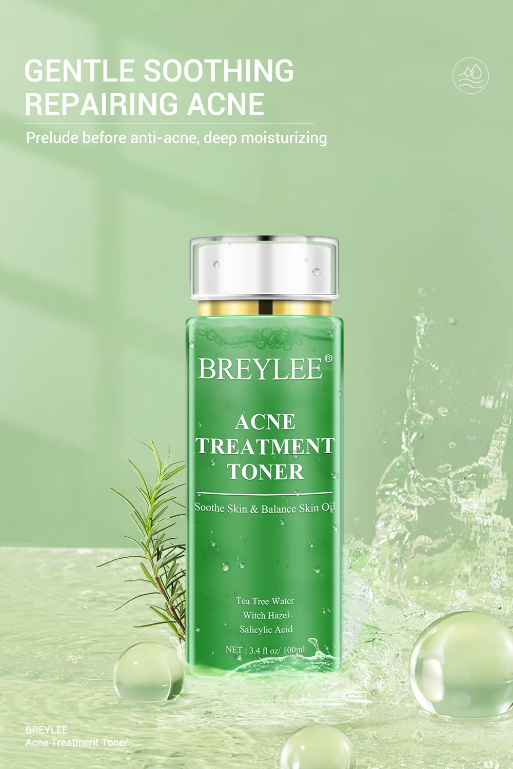 Название продукта, тонер для лечения акне BREYLEE Технические характеристики 3,4 жидких унций/100 мл Содержит мягкую формулу с водой из чайного дерева, гамамелиса, салициловой кислоты и других нежных ингредиентов, этот Тоник для лица может эффективно успокоить кожу, расчистить поры и сбалансировать масло кожи, облегчает и восстанавливает поврежденную кожу, вызванную акне, делая кожу комфортной и освежающей. Состав: Aqua/Water,Melaleuca Alternifolia (Tea Tree), экстракт хамамелиса виргинской, Glycereth-26, камедь акации, салициловая кислота, глицерин, сополимер глицерилакрилата/акриловой кислоты, сополимер Pvm/Ma, ментиллактат, Ниацинамид, экстракт корня софоры ангустифолии, экстракт корня глицирризины инфлаты, экстракт корня скателларии байкальской, полиакрилат Crosspolymer-6, пантенол Nonoxynol-14, ксантановая камедь, Диодная ЭДТА, гиалуронат натрия. Срок годности: 3 года Как использовать Шаг 1 после очищения нанесите необходимое количество на ладонь. Шаг 2 нанесите на лицо и Аккуратно помассируйте. Шаг 3 до полного впитывания кожи.