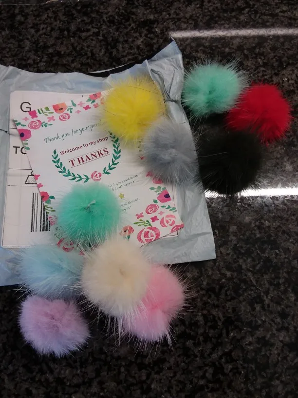 Хорошенькие помпоны. Пришли как заказывала - 5 шт. Доставка немного задержалась, но не критично. Так как мне нужны были сами кусочки норки, я их расшила из круглых, разрезав нить. Если у вас сильно помялся мех в пути - рекомендую намочить и дать высохнуть естественным путем. После высыхания мех стал ровным. Я довольна покупкой. Рекомендую продавца