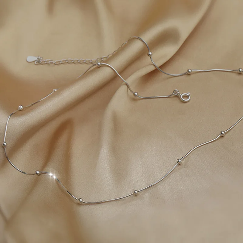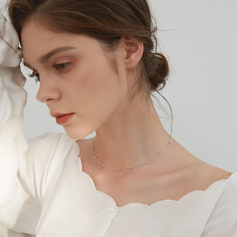 Женское колье-чокер из серебра 925 пробы с круглыми бусинами