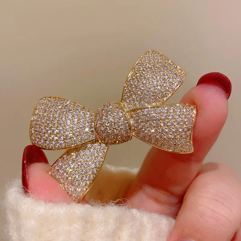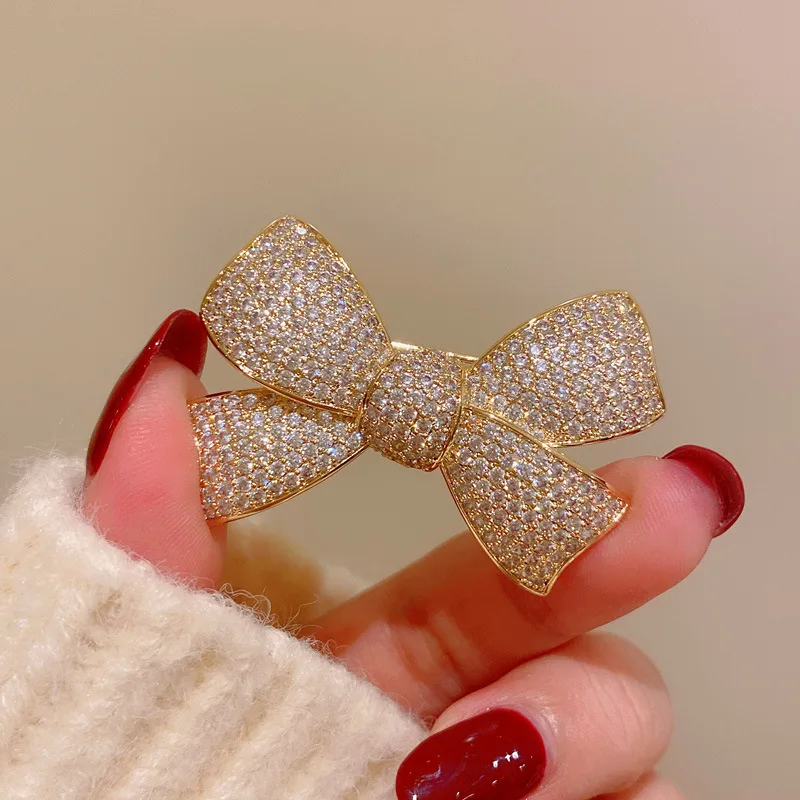 Модная классическая роскошная брошь в виде банта из Кубического циркония AAA, Женские аксессуары для пальто, высококачественные Позолоченные броши, булавки, ювелирные изделия