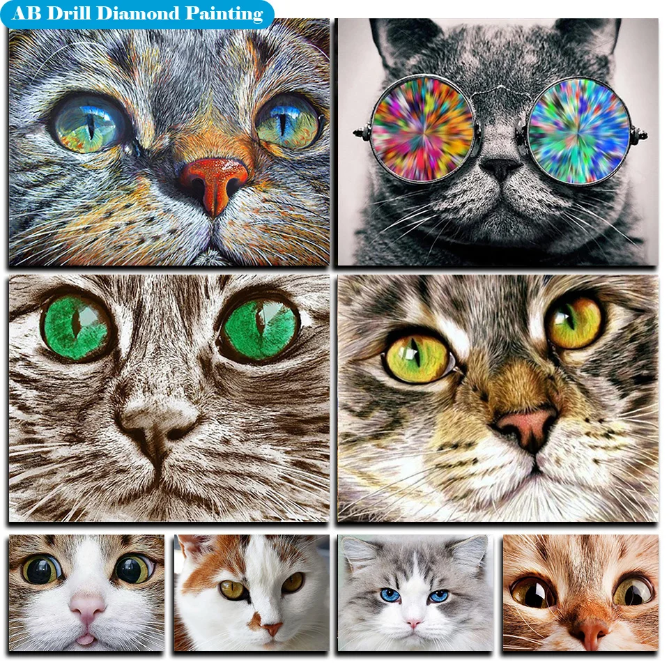 Алмазная живопись AB с животными и кошками 5D, полноразмерная мозаика, картины Стразы, алмазная вышивка крестиком, рукоделие, украшение